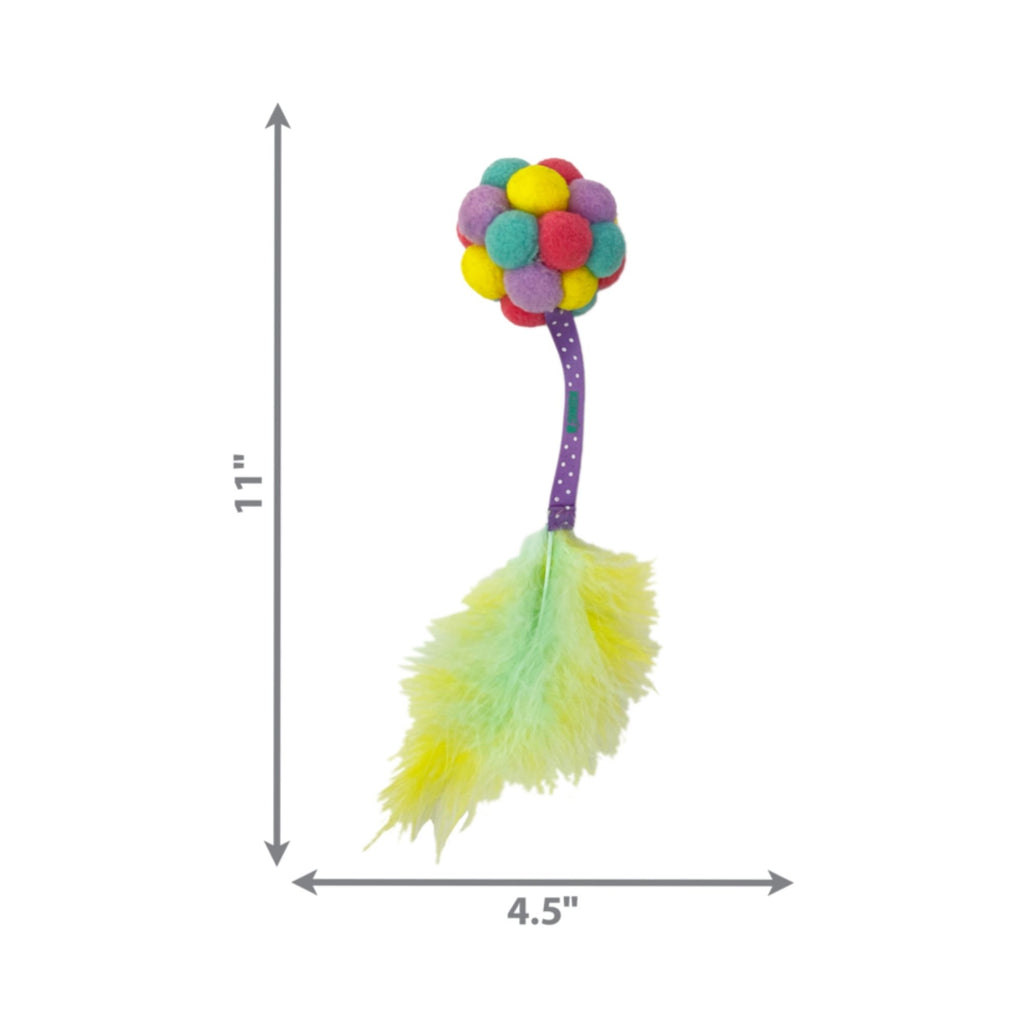 KONG Active Bubble Ball tempts cats into instinct-satisfying bat-and-chase fun with multi-sensory features propelled by an irresistibly rolling pompom ball. The fluttering feathered tail sparks hunting instincts while the tinkling bell within the pompoms keeps play going.
