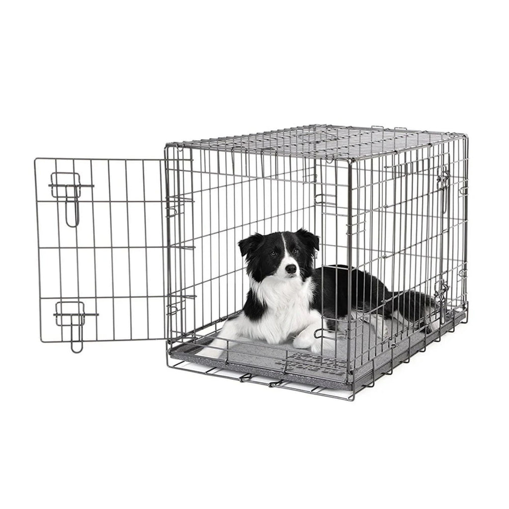 The Dogit 2 Door Black Dog Crate features two doors for easier access and a removable strong plastic base tray, making it easy to clean. Made of powder-coated wire, it is quick and easy to assemble.