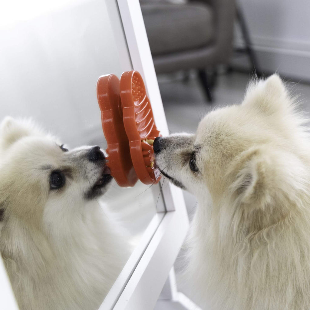 KONG Licks ridges and grooves hold Easy Treat, peanut butter, kibble, etc., for long-lasting licking. Fights boredom and occupies distraction during exams, baths and nail trims. Plus, licking releases endorphins that help soothe dogs. Two suction cups stick to flat surfaces for a movable feast of fun. Different ridge shapes hold variety of food, keeps pups interested and helps clean tongue and teeth.