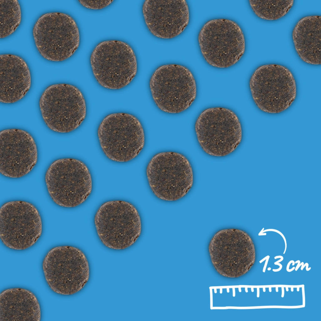 Crude protein 22%, crude fat 15%, crude ash 7.5%, crude fibre 3.5%, omega-6 fatty acids 3%, omega-3 fatty acids 2.9%, linoleic acid 2.4%, EPA** 0.33%, calcium 1.2%, phosphorus 0.85%, potassium 1%, sodium 0.3%, vitamin E 600mg/kg. Metabolisable energy 373kcals/100g. **Eicosapentaenoic acid.