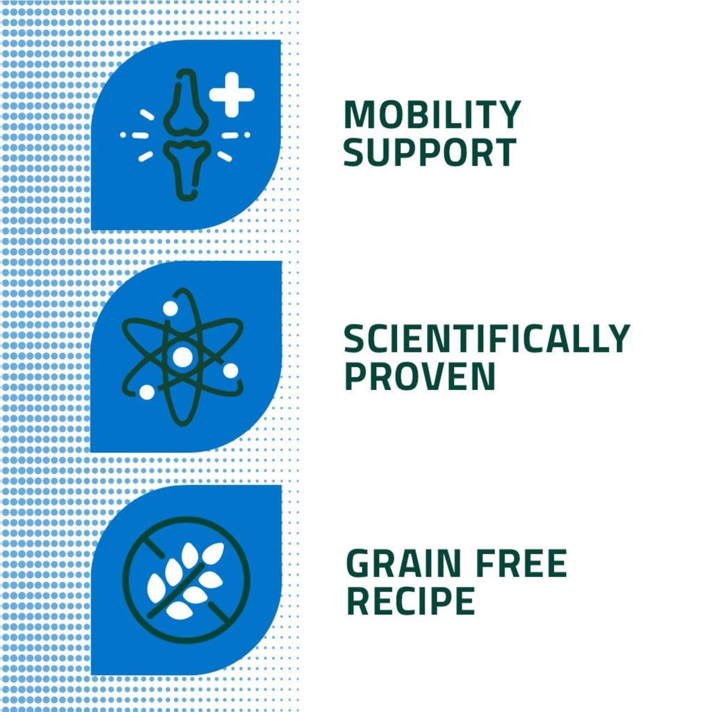 A grain free recipe, approved by veterinarians, offering a tailored, natural solution to support the metabolism of joints in the case of osteoarthritis.
