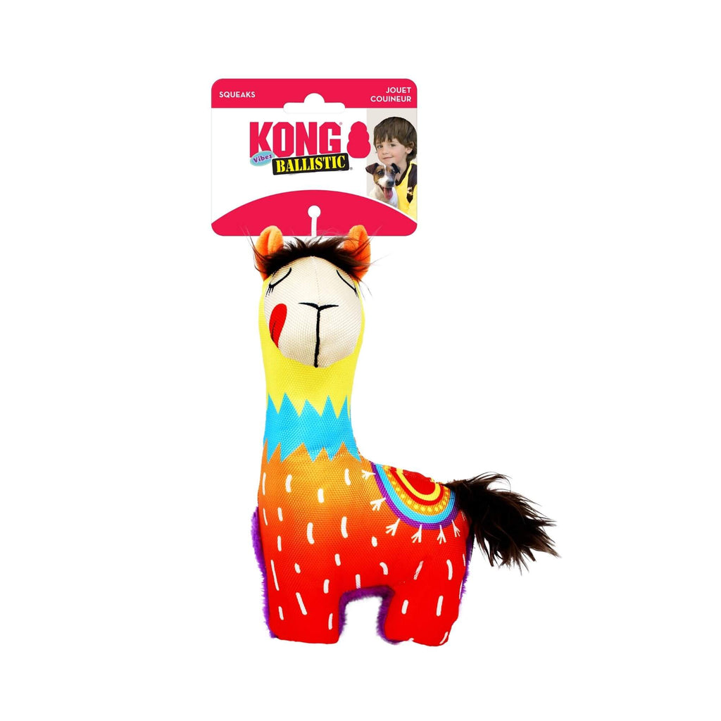 KONG Ballistic Llama’s durable material means long-lasting fetching and shaking adventures with a bright, grinning pal whose squeaker sparks instinct-satisfying action. A variety of textures adds excitement to every expedition across the yard or sofa summit while the long neck is easy to grab for dogs of all sizes.