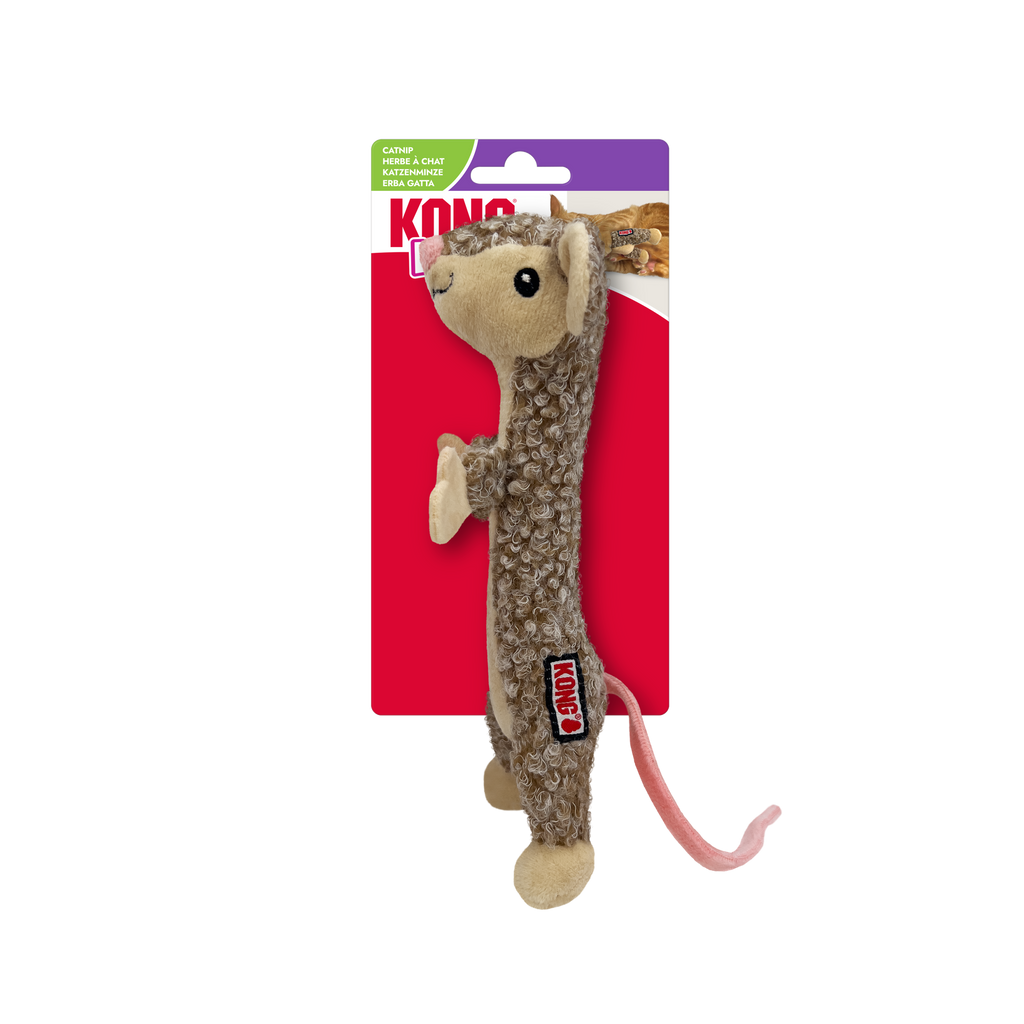 KONG Cat Luvs Mouse is ready for rounds of active play with your cat! This oversized cat toy is ideal for full-body play sessions, with uniquely textured outer material and an inner crackle that sparks wrestling and hind paw kicking. Easy-to-capture features like its head, feet, and tail make this mouse an ideal contender. KONG Premium North American Catnip inside keeps cats coming back for energetic rounds of solo play. When your cat is tired from all the action, the Luvs Mouse becomes the perfect snuggle.