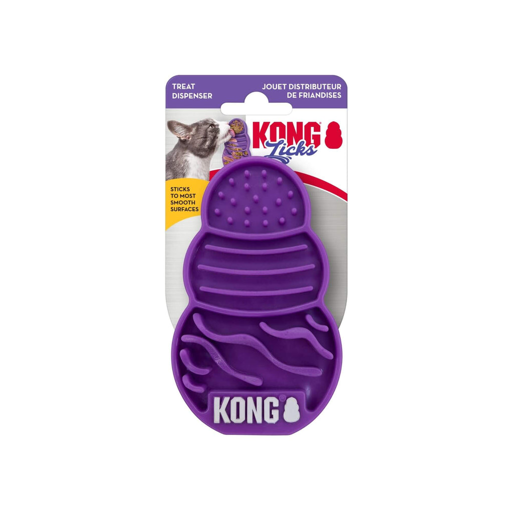 KONG Licks Kitty is the perfect holder for long-lasting meals and treats! Fill the ridges and grooves with KONG Mousse, wet food, dry treats like KONG Nibbies, or your cat’s favorite kibble. The Licks Kitty can be used for soothing moments, enrichment time, daily feeding, and for calming during grooming sessions. Raised ridges promote overall good oral health, helping to clean the tongue and teeth. Two suction cups allow this treat pad to stick to most flat surfaces. Encourage your cats’ prey-hunting instincts by moving the Licks Kitty to different locations each day.