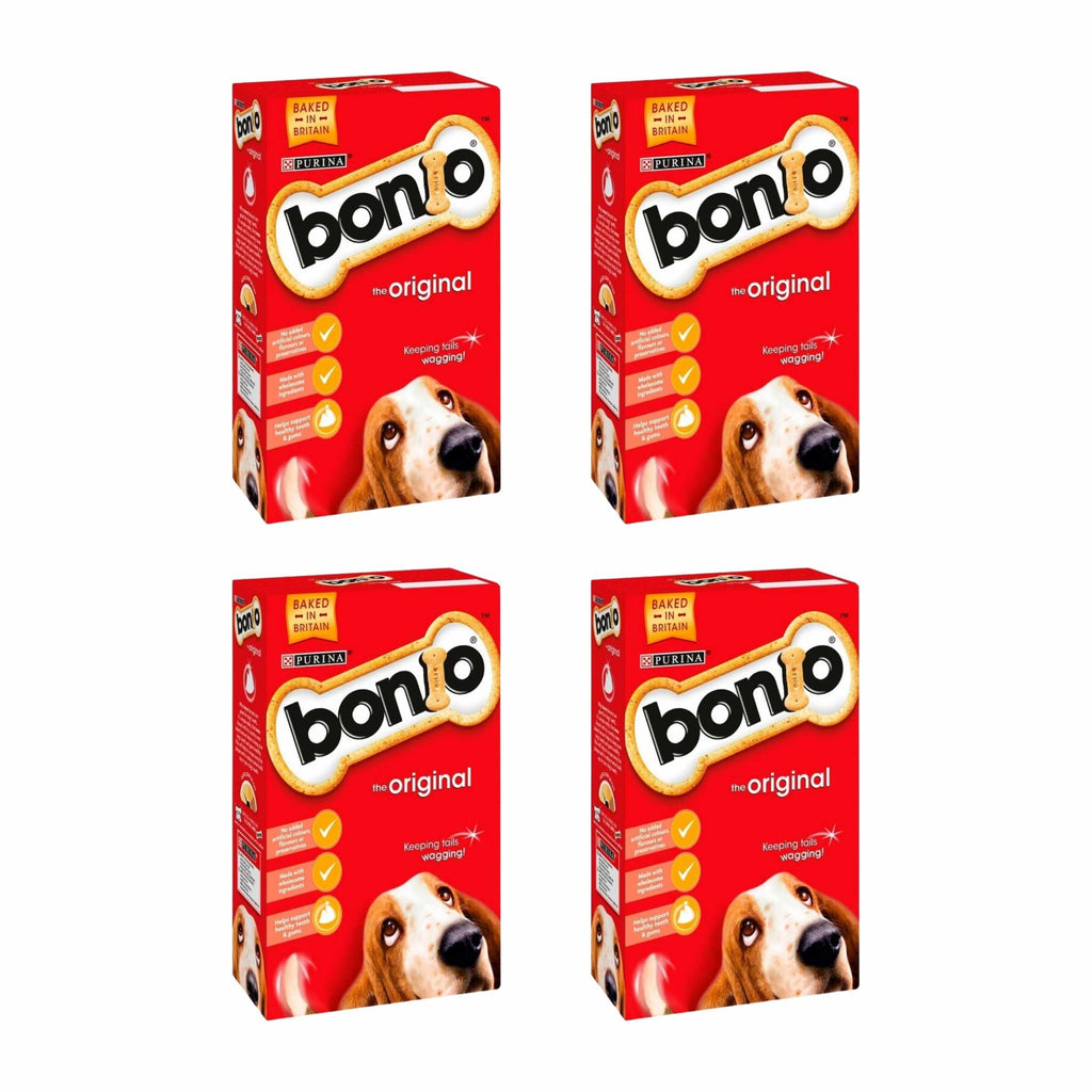 Bonio Original Dog Biscuits. Oven-baked to give a delicious crunchy texture that helps keep your dog's teeth healthy. Wholesome and nutritious - a great treat for morning noon and night! Low in fat to help your dog maintain a healthy body condition. Developed using carefully selected ingredients. A complementary pet food this tasty snack that's sure to get your dog's mouth watering and his tail wagging!
