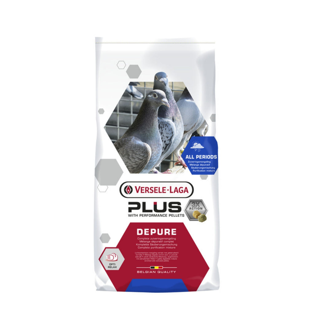 Versele-Laga Pluc I.C. Depure is a complete purification mixture. Complete pigeon feed enriched with the special Immunity Concept+ pellet (with a.o. fresh vegetables and herbs). That is why the Plus I.C.+ Depure has an added value in comparison to a conventional depurative mixture. The added extruded Plus I.C.+ pellets work for a better digestion and an additional number of vitamins and amino acids, which are important for the general health. This is so much more than a conventional depurative mixture that only provides a solution to the pigeons protein and fat requirement.