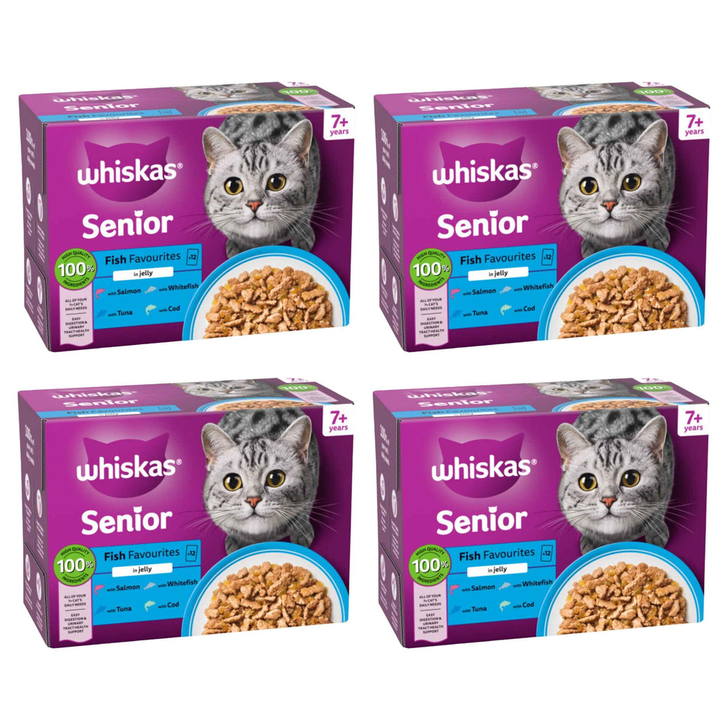 Whiskas Senior 7+ Fish Favourites in Jelly. Cat lovers know that purring is the best sound you can hear. This delicious wet cat food recipe makes millions of cats around the world rush to their bowls with purring excitement and lickingly-good satisfaction.