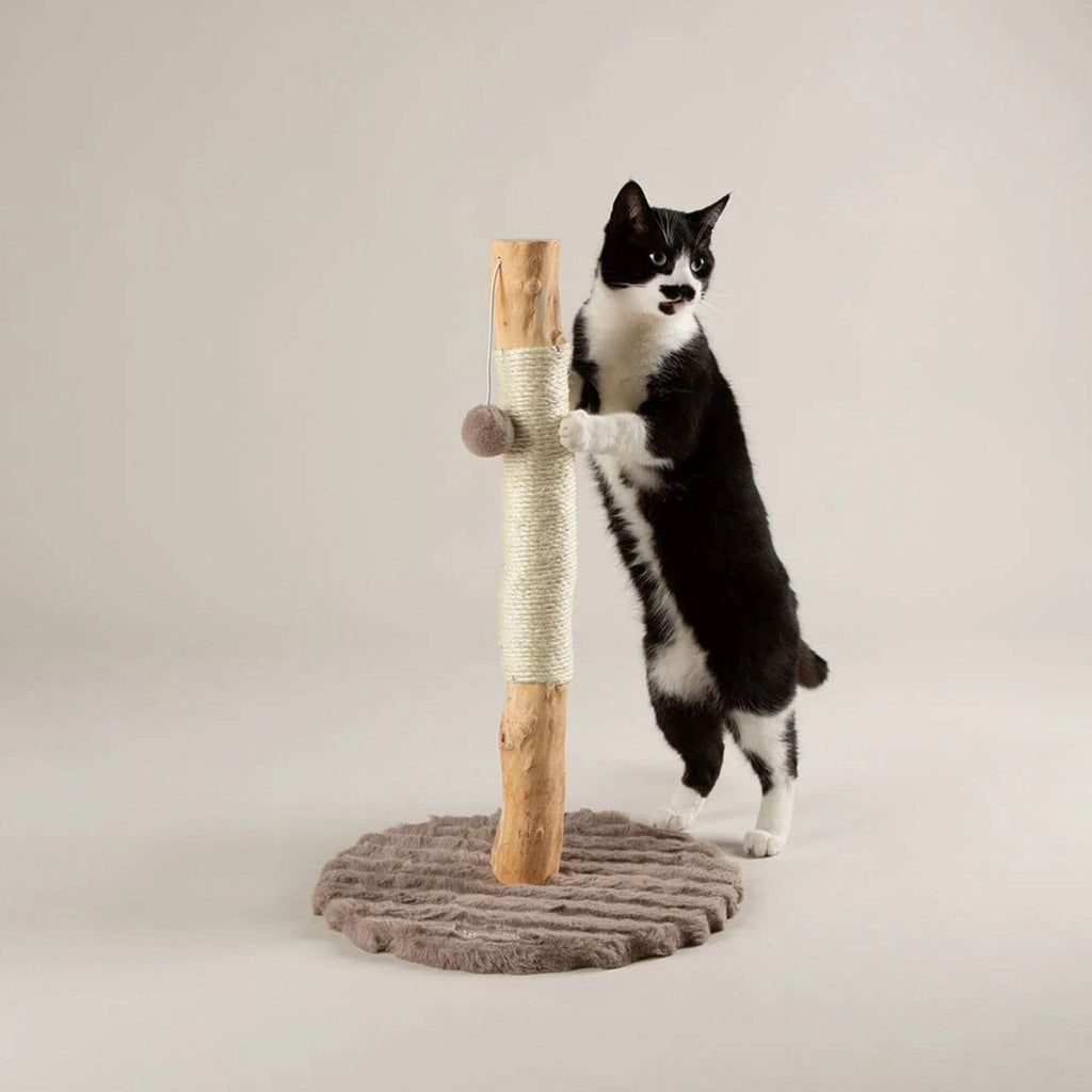 Scratch - The scratching post is built to last using hard and durable pear wood and naturally tough sisal rope. Perfect materials to keep claws healthy. Cats naturally scratch whatever they can in their habitats. Scratching is vital to their claw maintenance, helps them mark their territory, helps express their emotions, is part of their play routine and provides a good workout and stretch for their legs and spine.
